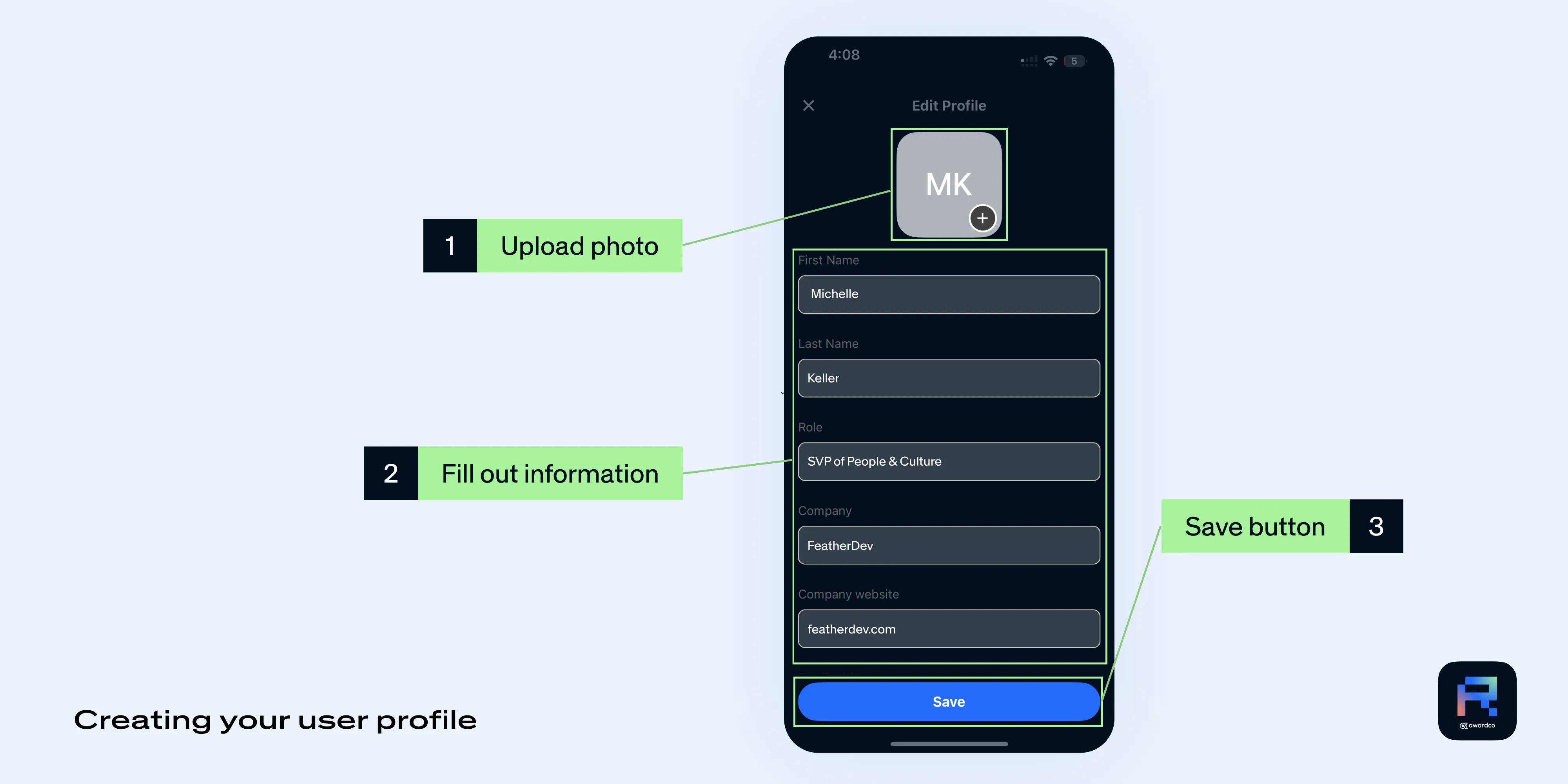 Follow these steps to update your profile on the Awardco platform: